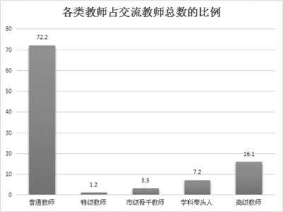 调查显示,交流教师选拔条件偏低。普通教师占交流教师总数的72.2%,市级骨干教师占3.3%,特级教师仅占1.2%。山东省某县交流教师表示,部分优质学校在教师交流上走过场,为维护学生升学率和优秀率,仅派能力一般甚至欠佳的教师交流任教。